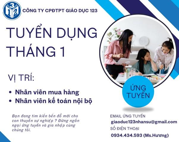 TUYỂN DỤNG THÁNG 12 Cùng Giáo dục 123 mở rộng hành trình nâng tầm tri thức Việt Nam Tháng...