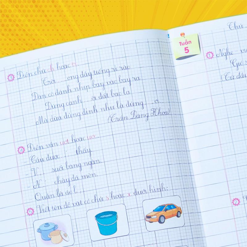 - Vở ô li có mẫu chữ (1 quyển): Rèn chữ viết, chuẩn từng nét, đẹp từng chữ.
